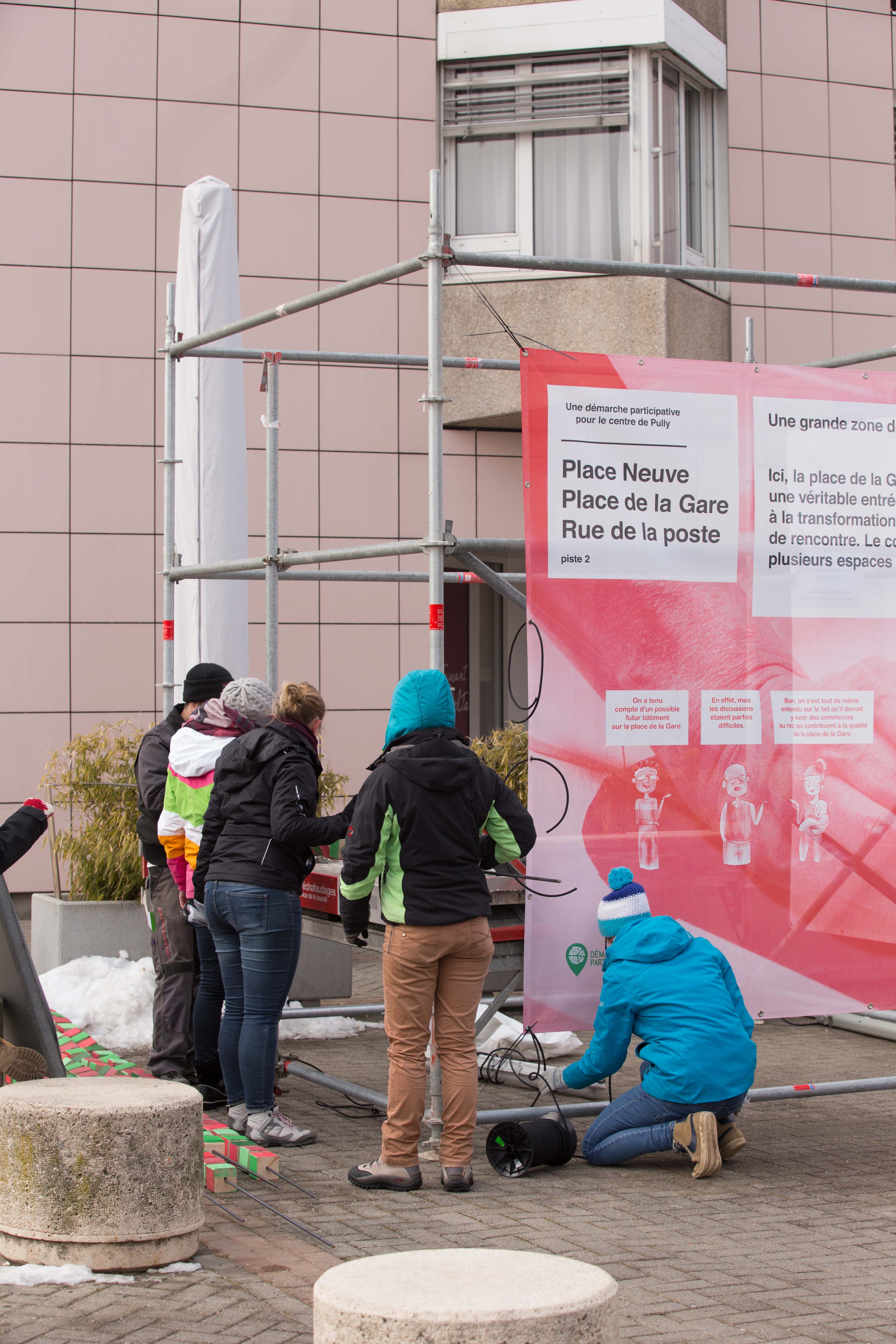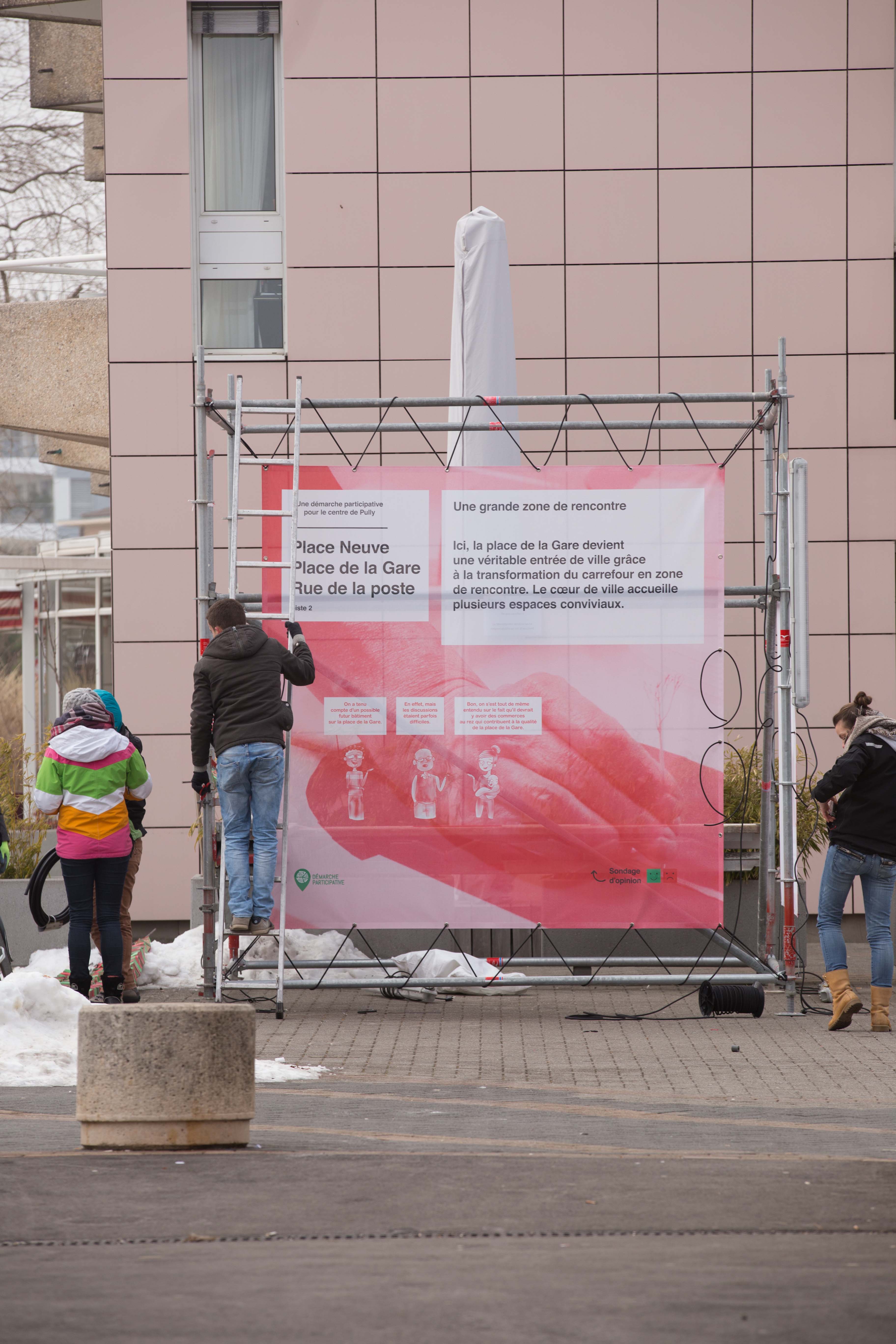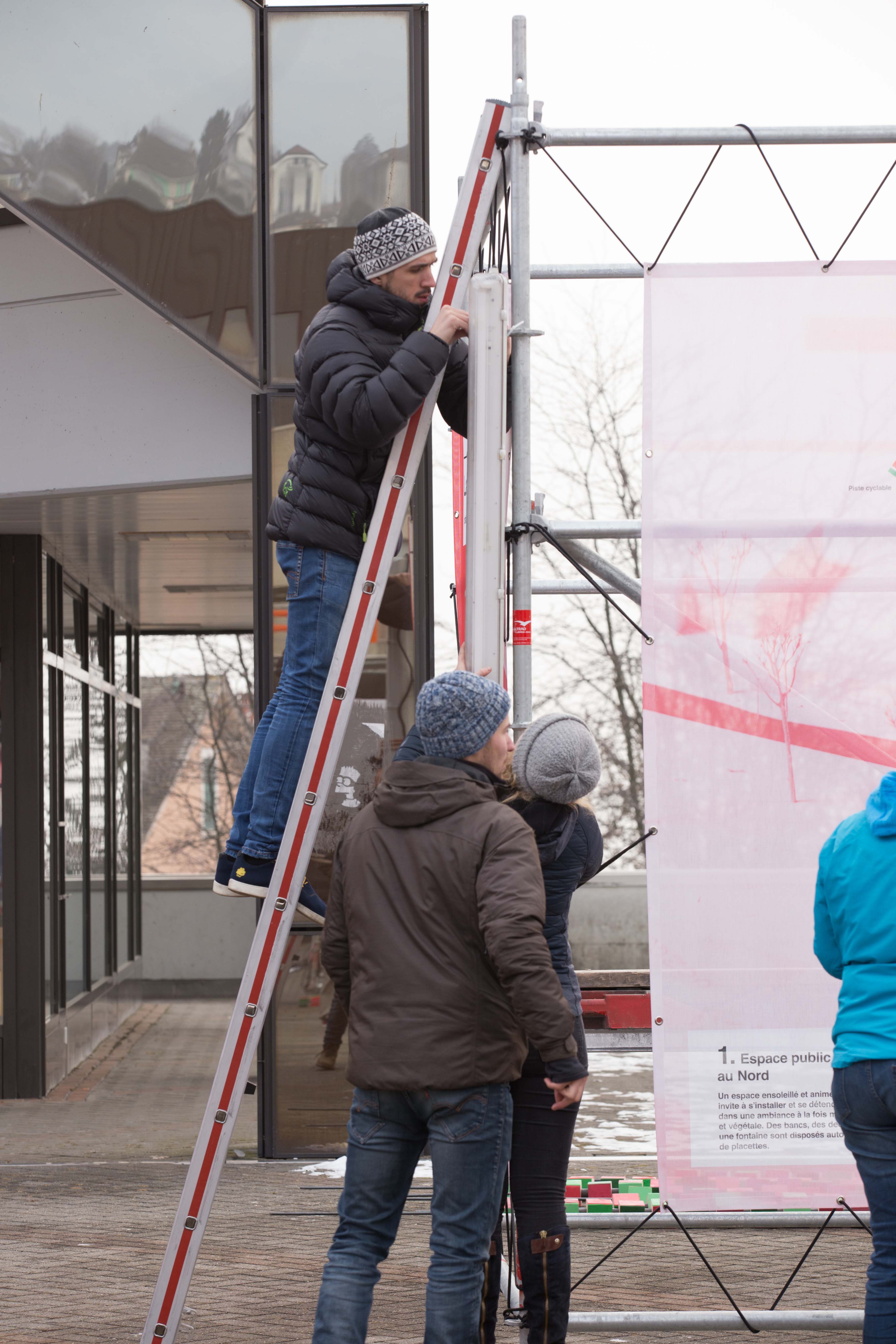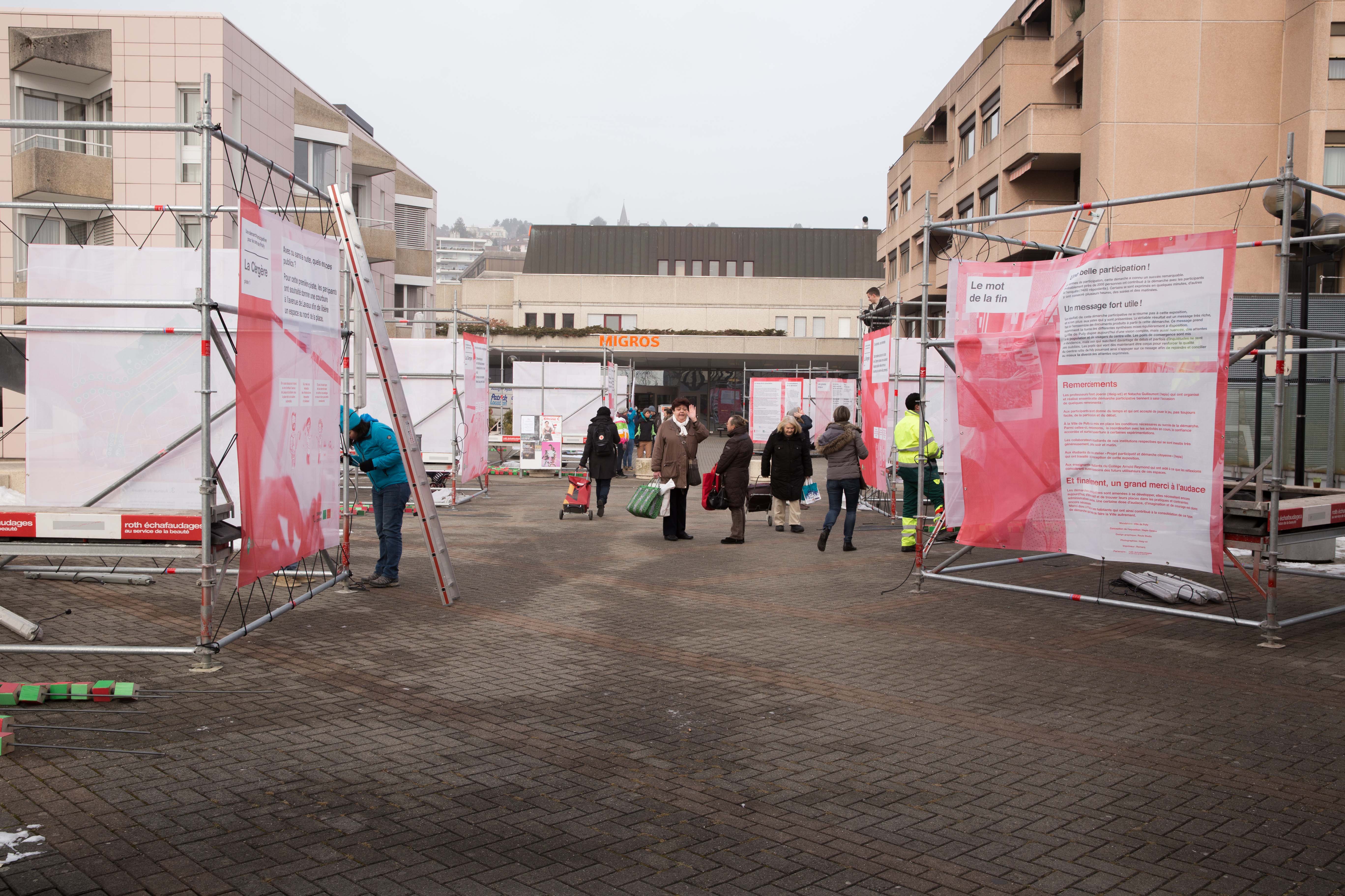 Les résultats de la démarche participative était exposés du 31 janvier au 14 février 2017 à la Pl. Neuve. Voici quelques clichés du montage et de l'exposition.