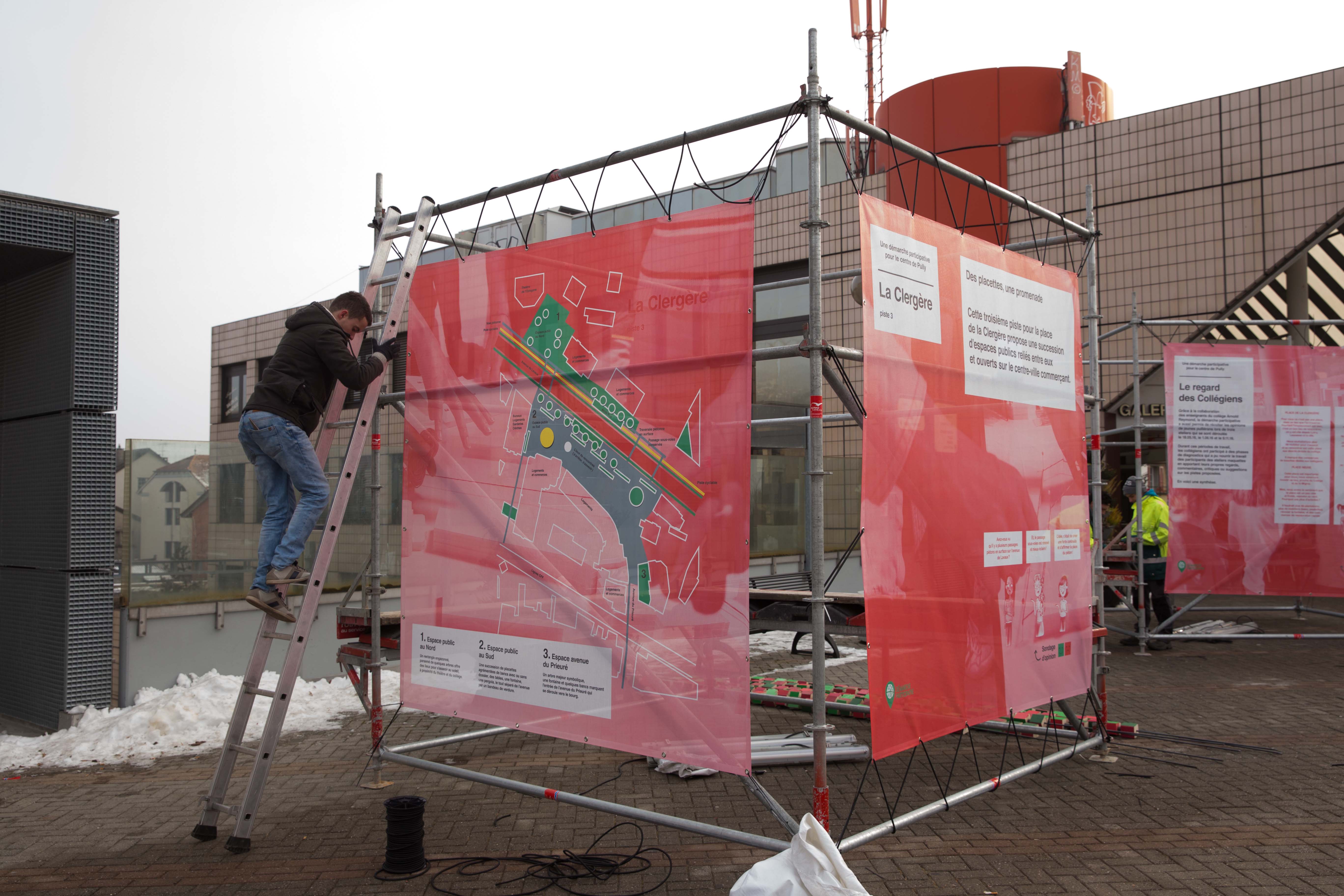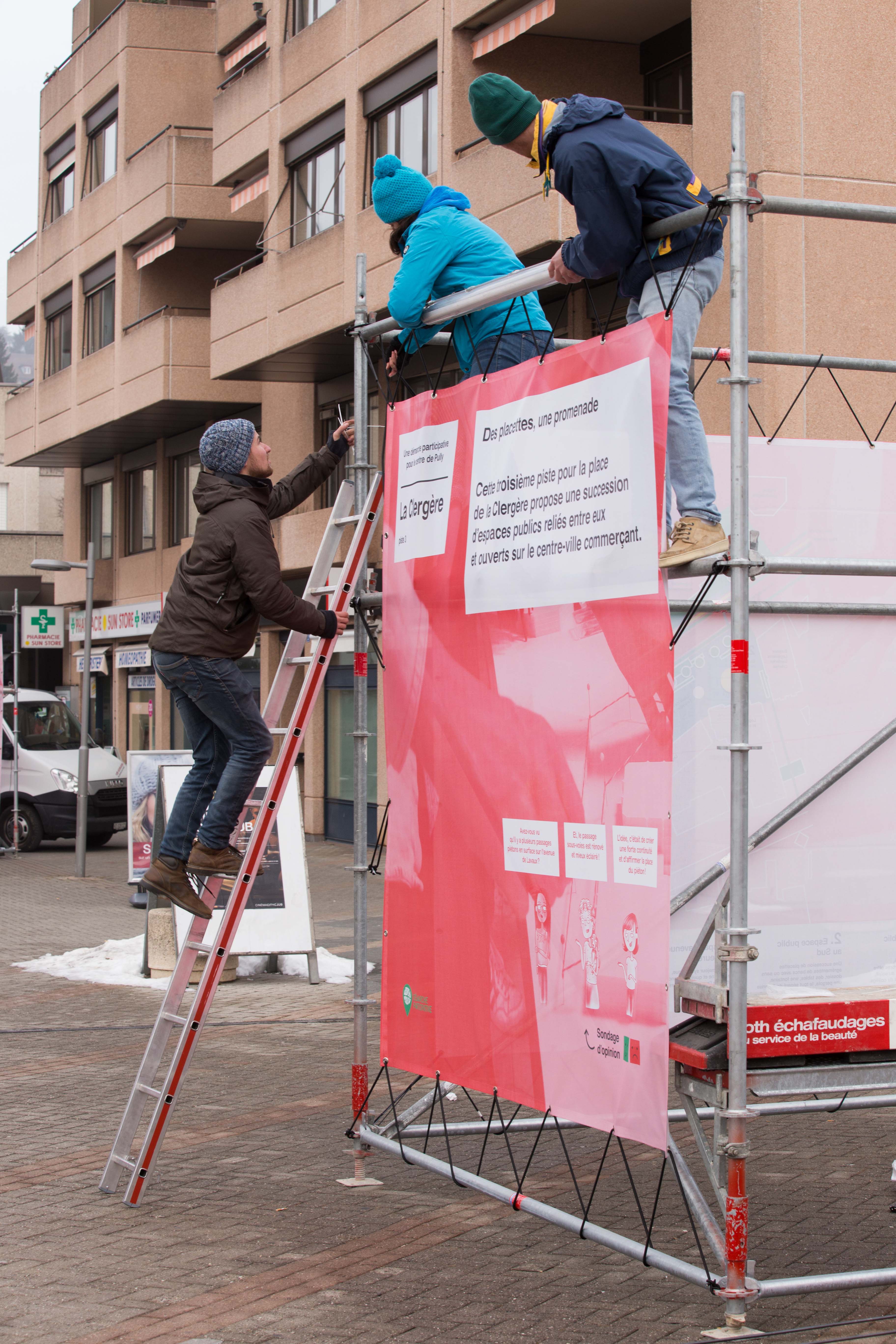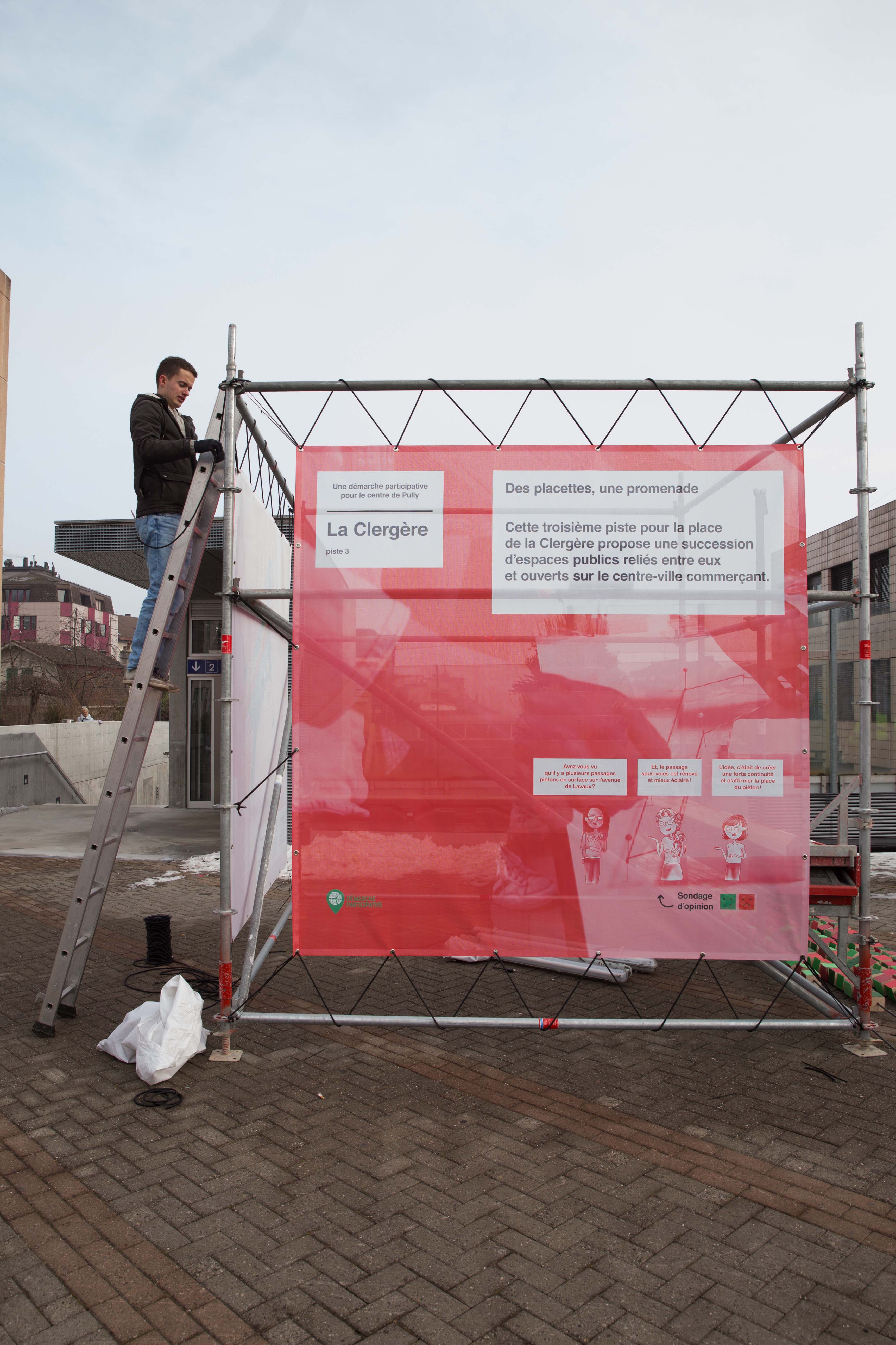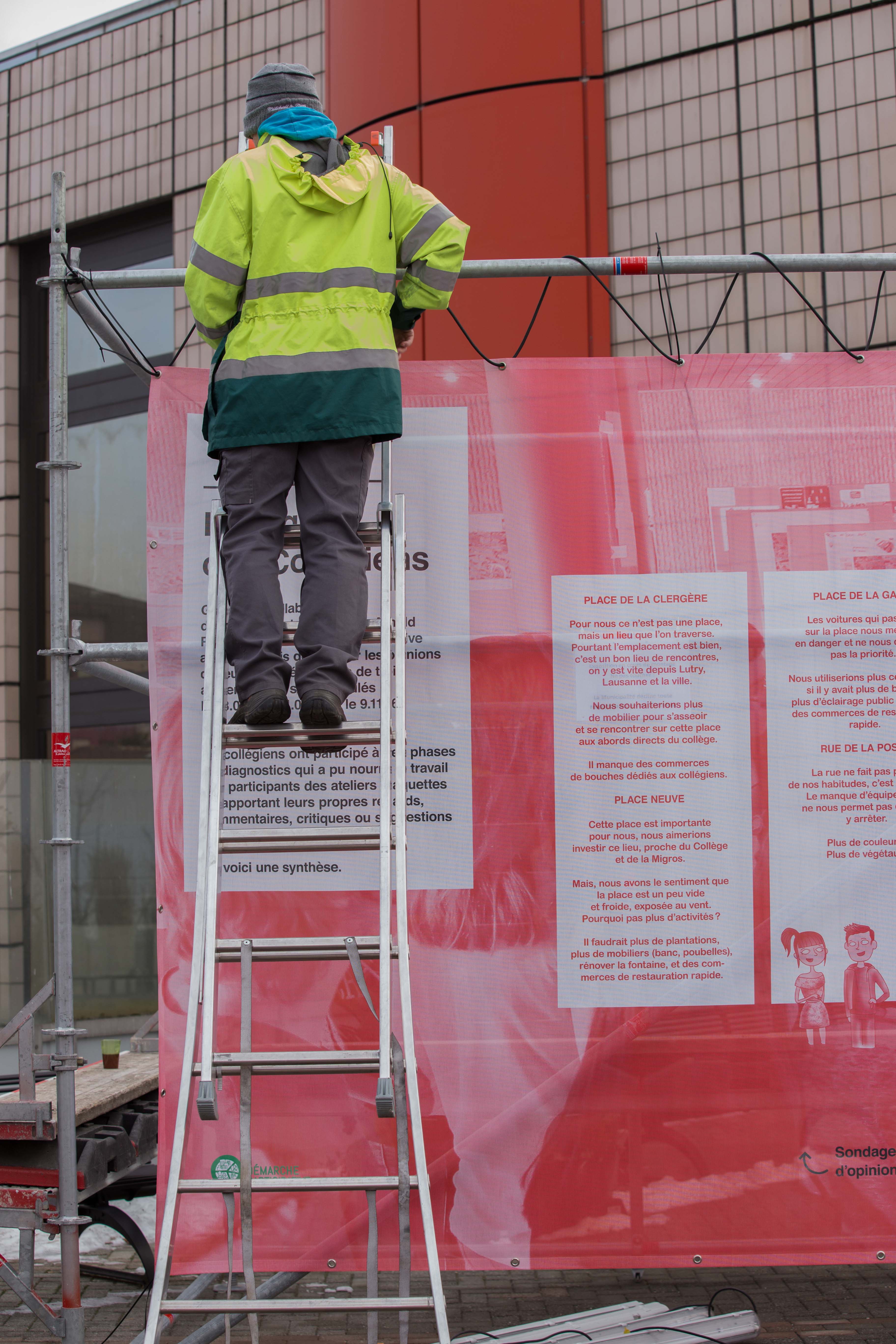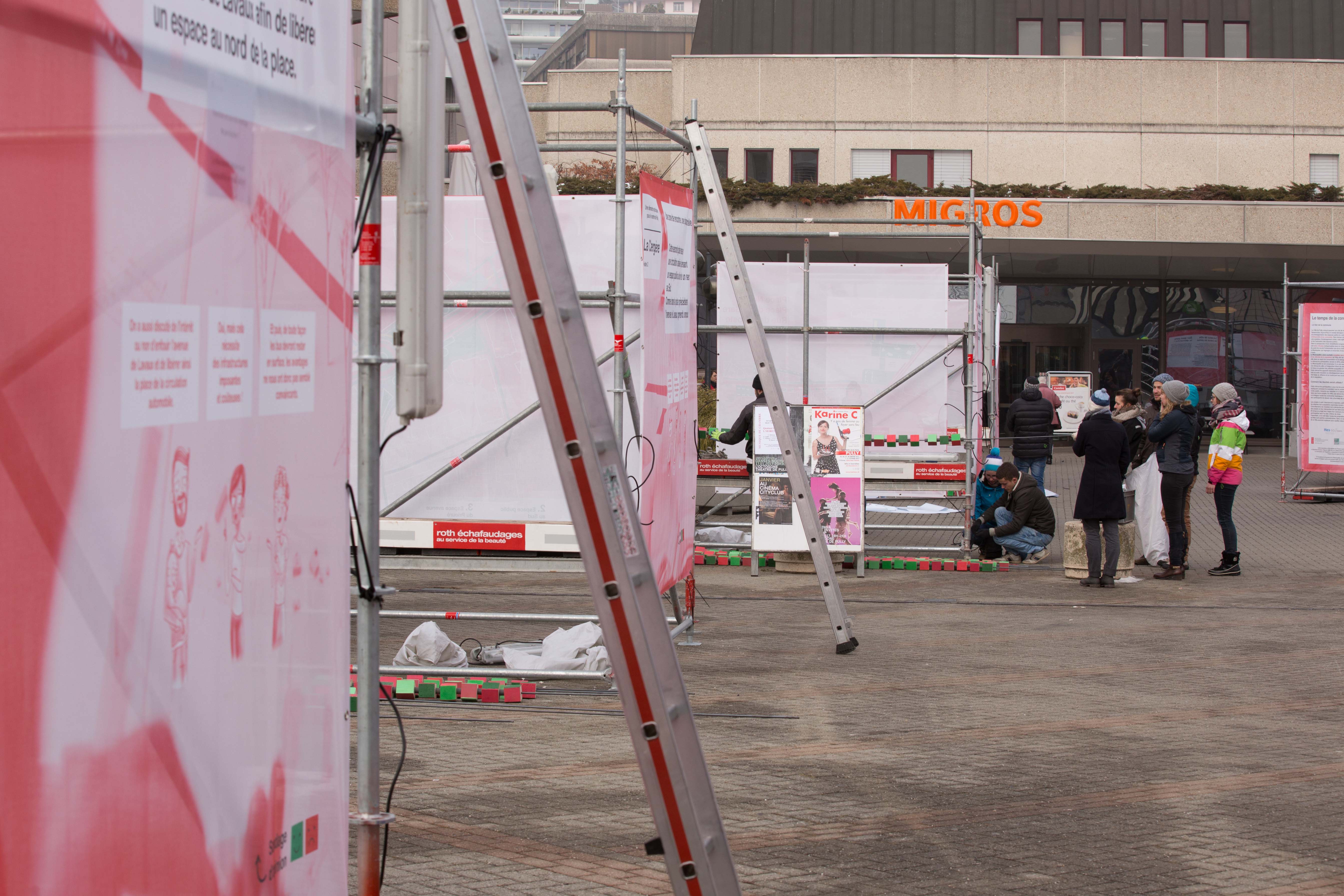 Les résultats de la démarche participative était exposés du 31 janvier au 14 février 2017 à la Pl. Neuve. Voici quelques clichés du montage et de l'exposition.