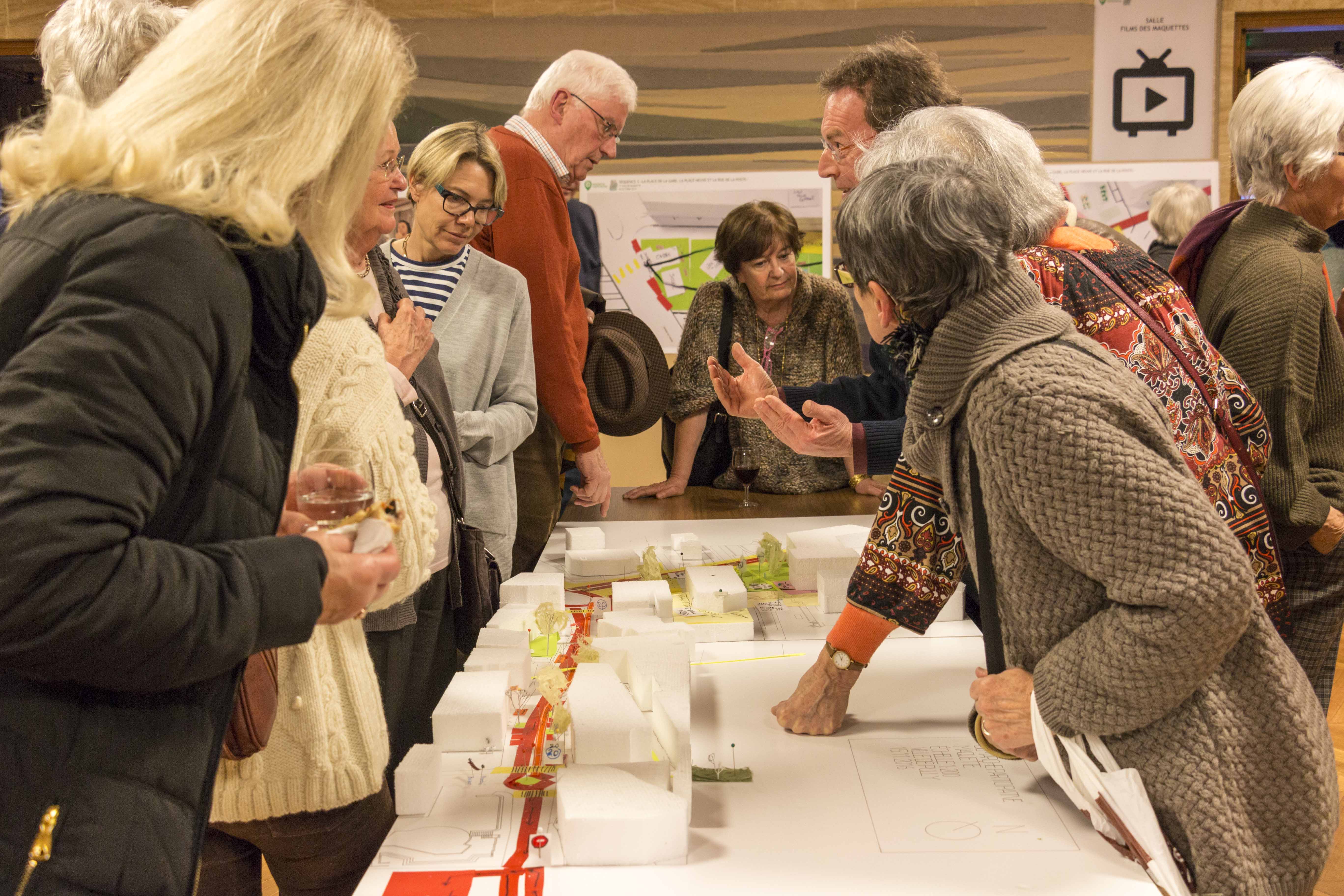 Entre le printemps et l’automne 2016, la place de la Clergère, puis la place Neuve, la place de la Gare et rue de la Poste ont fait successivement l’objet d’ateliers où les participants ont notamment pu concrétiser leurs propositions sur des maquettes.